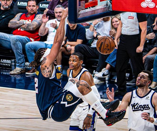 跳球開始約基奇贏得跳球但違例了,首次進(jìn)攻球權(quán)給到國王,穆雷對上施羅德,布勞恩防守拉文,小薩對位約基奇,戈登面對德羅贊,小薩約基奇各自中距離命中,雙方2-2開局。德羅贊三分打鐵掘金進(jìn)攻小薩無球犯規(guī),約翰遜上籃離譜偏出,小薩籃下再打約基奇一個(gè),約翰遜第二次上籃把握住了,小薩來到內(nèi)線拋投還有,防守端國王內(nèi)線漏人布勞恩空籃輕松得分,拉文快速突擊上籃也有,布勞恩突破上籃比分8-8,雙方真是誰也不防守。小薩來到外線連續(xù)三分不中,約基奇勾手,穆雷三分掘金領(lǐng)先5分,施羅德三分還是不中戈登坐打施羅德,輕松打板命中15-8掘金領(lǐng)先7分,國王主教練喊出暫停?;氐奖荣愋∷_頂開戈登單臂暴扣,穆雷三分不中戈登補(bǔ)籃有了,小薩籃下極限秒傳阿丘瓦輕松吃餅,戈登順下想隔扣吃到進(jìn)攻犯規(guī)!